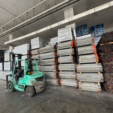 All inventory is carefully organised and stored in a fully sheltered indoor warehouse, protected from weather-related degradation.
